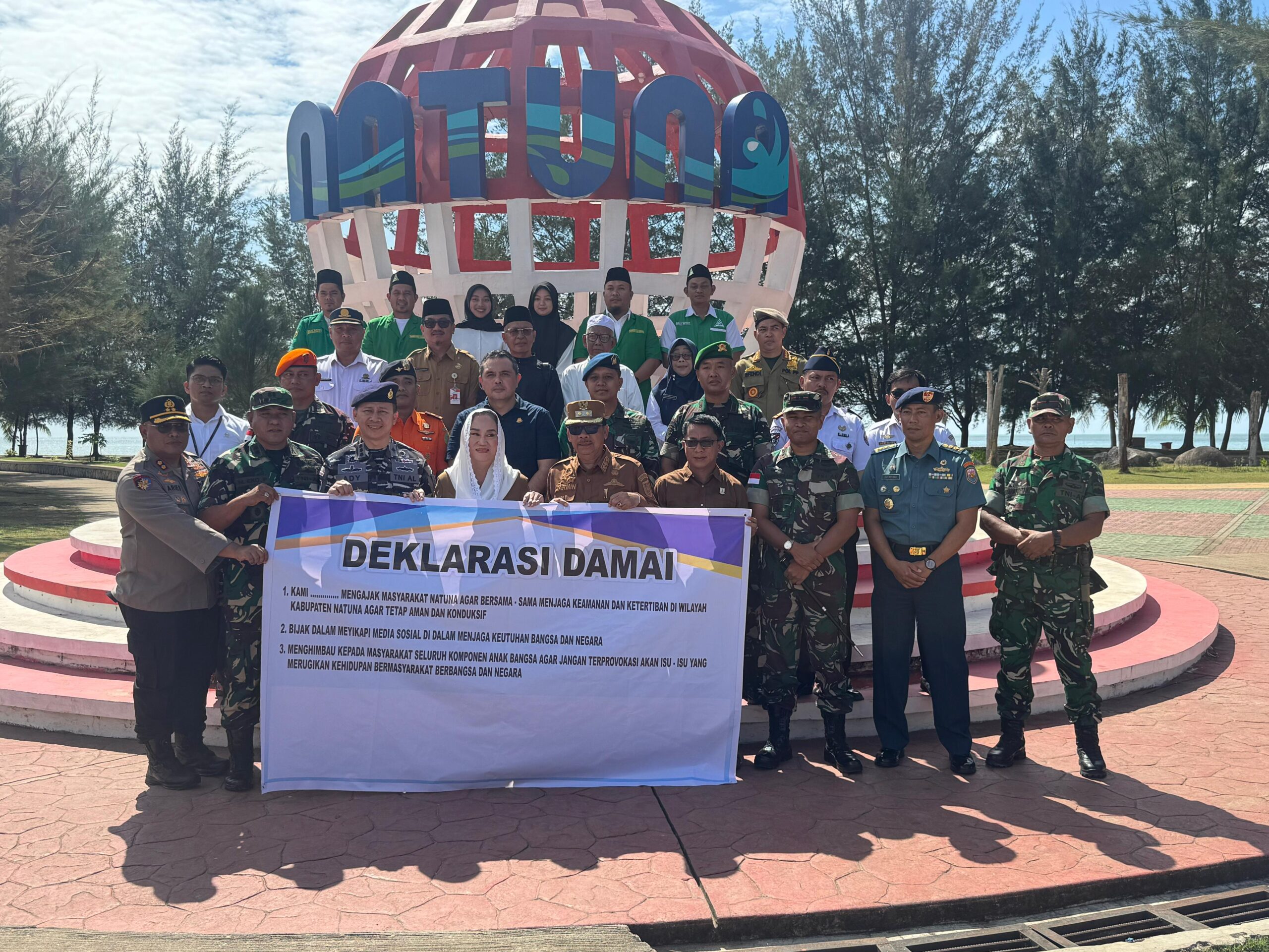Kegiatan berlangsung khidmat dan penuh semangat persatuan, menggambarkan komitmen nyata seluruh elemen untuk menjaga Natuna tetap aman, damai dan harmonis.