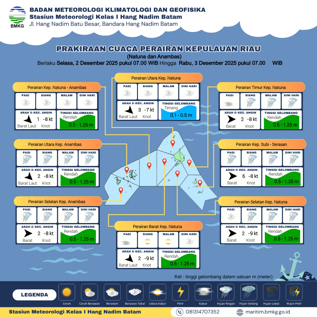 Sementara, Kepala BMKG Hang Nadim Batam, Ramlan, menjelaskan bahwa potensi peningkatan tinggi muka air laut disebabkan oleh fenomena Fase Perigee (jarak terdekat bulan ke bumi) serta Bulan Purnama pada 4 Desember 2025.