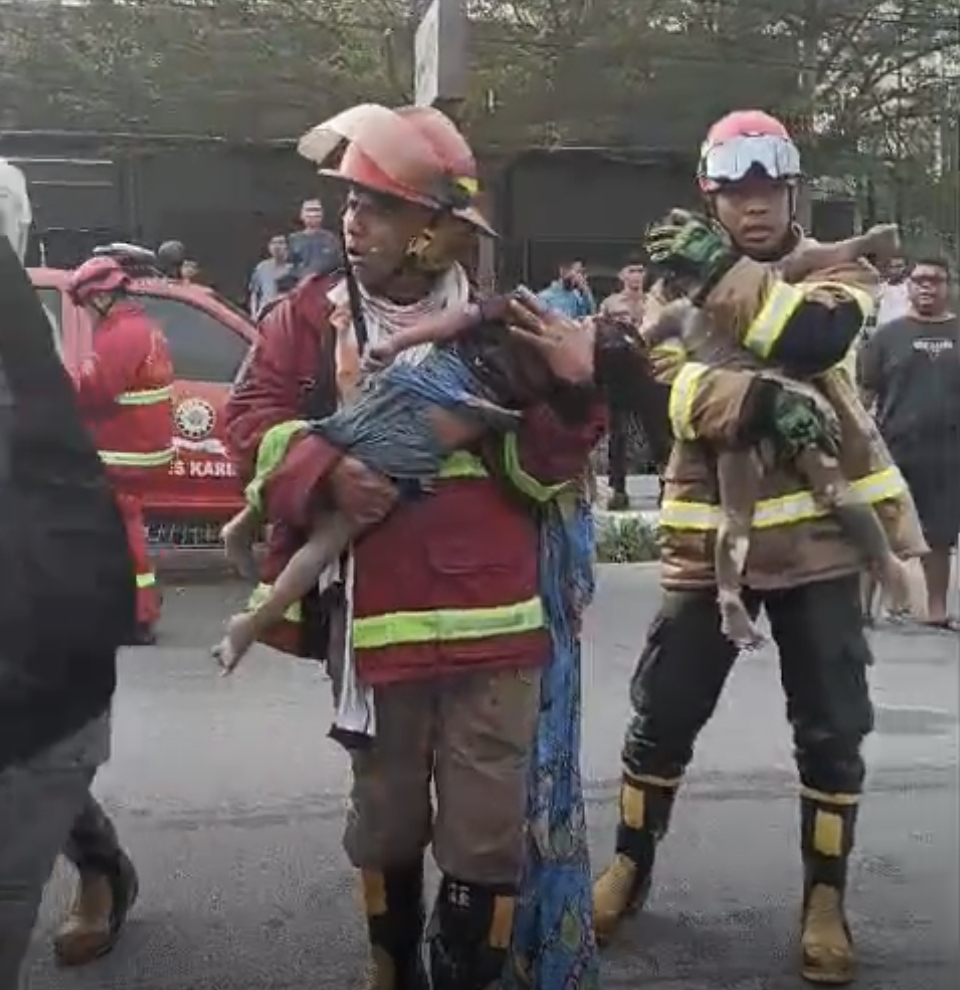 “Alhamdulillah saat tadi masih bernyawa, kita temukan tiga korban, dua balita masih bernyawa langsung kita evaluasi keluar, kondisinya masih bernyawa, Sementara satu orang dewasa sudah terlihat lengket dan terbakar. Ketiganya di temukan di lantai 2, disatu kamar dibawa tangga paling belakang,” ujar Agus sambil merebahkan badannya ke trotoar karena nyaris lemas.