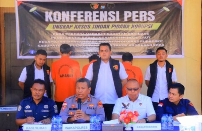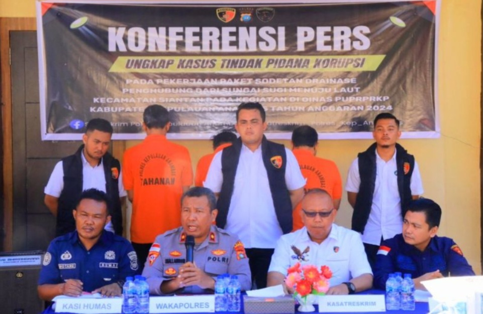 Kepri, Posmetrobatam.co: Tiga orang ditetapkan sebagai tersangka dalam kasus dugaan tindak pidana korupsi proyek sodetan drainase penghubung Sungai Sugi tahun anggaran 2024, Kepulauan Anambas.