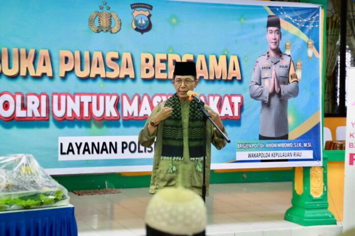Batam, posmetrobatam.co: Wali Kota Batam, Amsakar Achmad, bersama Kapolda Kepulauan Riau (Kepri), Irjen Pol Asep Safrudin, ikut turun langsung menyajikan santapan berbuka puasa bagi warga di Masjid Al-Fajri, Sembulang, Kecamatan Galang, Selasa (3/3/2026).