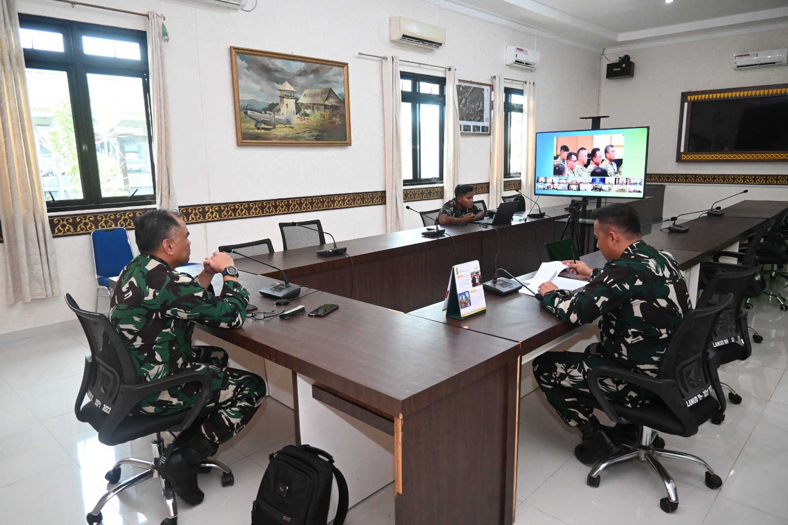 Pinang, Posmetrobatam.co: Komandan Lanud Raja Haji Fisabilillah Kolonel Pnb Agus Rohimat, M. Avn. Mgt., mengikuti Rapat Koordinasi Teritorial (Rakorter) TNI Tahun Anggaran 2026 secara video conference (vicon) dari Ruang Rapat Mako Lanud Raja Haji Fisabilillah, Tanjungpinang, Kamis (5/3).