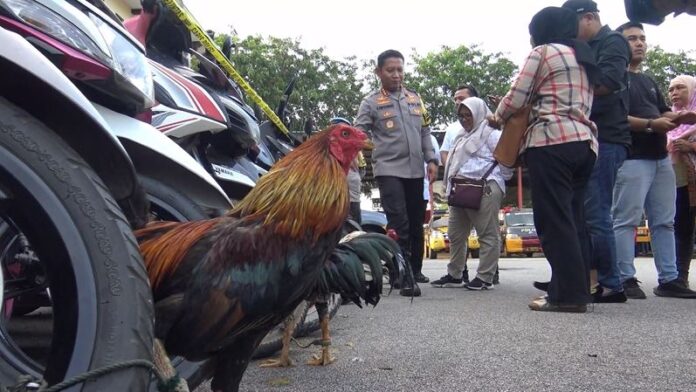 BATAM, POSMETROBATAM.CO: “Jangan bergerak, angkat tangan, kami dari Satreskrim Polresta Barelang,” kata salah satu petugas sambil meminta kepada pengunjung tetap diam di tempat dan tidak kabur dari arena sabung ayam di kawasan hutan lindung Duriangkang, Kota Batam, Kepri pada Sabtu (2/11) malam.