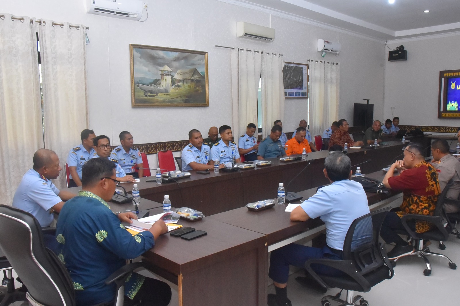 Rapat berlangsung di Ruang Briefing Mako Lanud RHF dan dipimpin langsung oleh Komandan Lanud RHF, Kolonel Pnb Rony Widodo, S.T., M.M., M.Han.