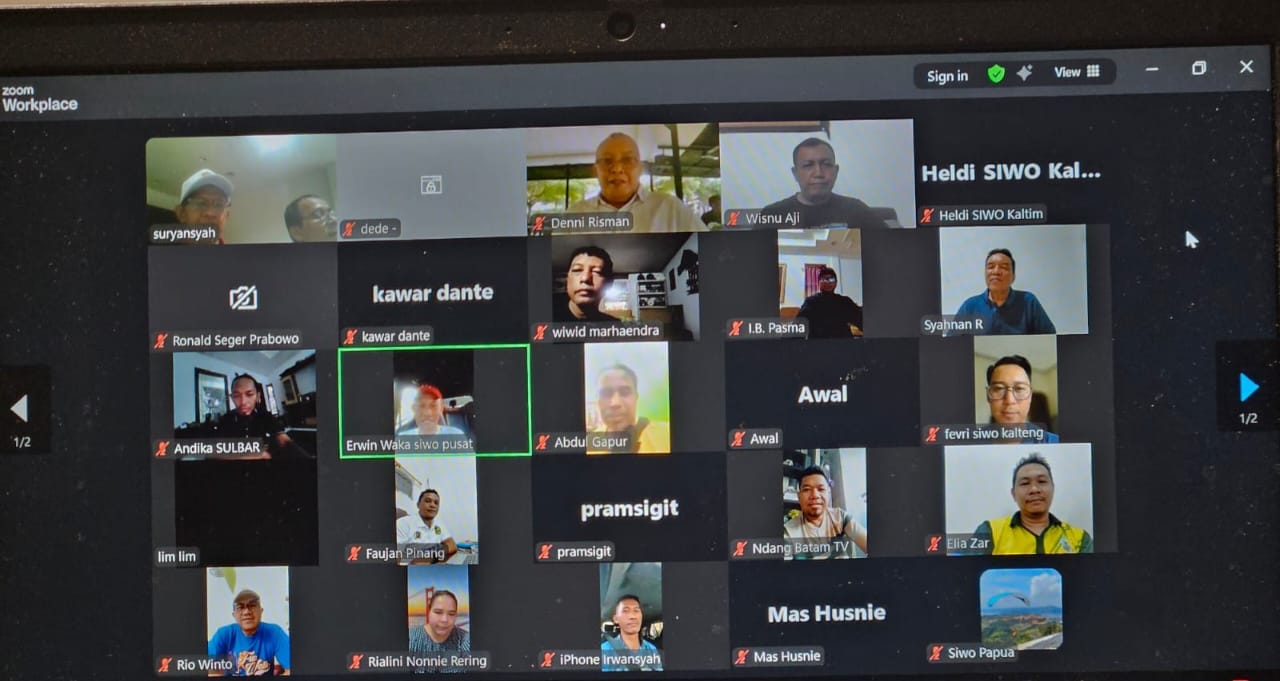 Batam, Posmetrobatam.co: Pengurus SIWO PWI Pusat menggelar Rapat Koordinasi Nasional (Rakornas) SIWO se-Indonesia melalui daring (Zoom), Sabtu (6/12). Rakornas ini menjadi pertemuan perdana sejak kepengurusan baru SIWO PWI Pusat di bawah kepemimpinan Suryansyah.