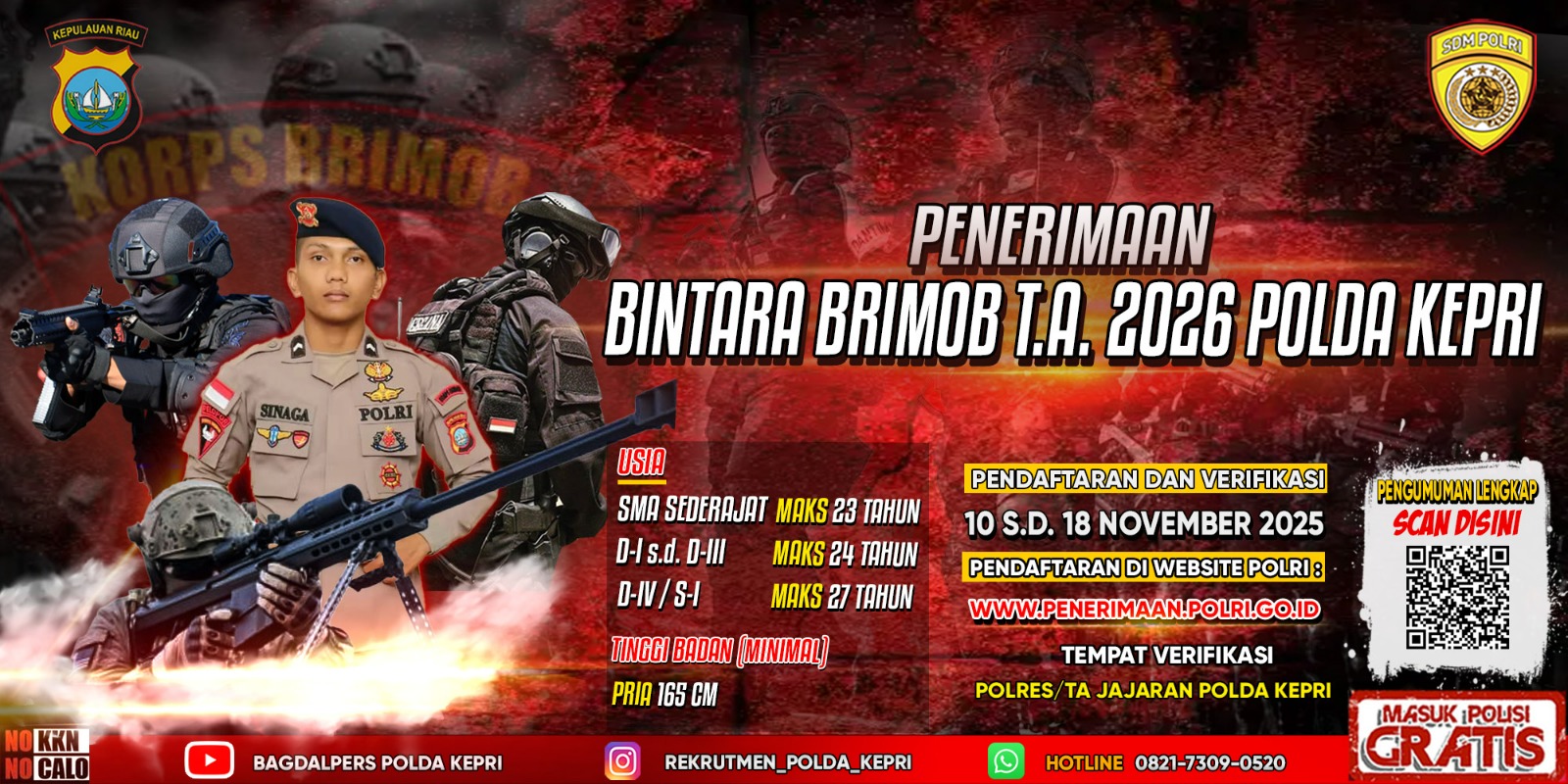 Natuna, Posmetrobatam.co: Kepolisian Resor (Polres) Natuna melalui Bagian Sumber Daya Manusia (Bag SDM) mengumumkan secara resmi pembukaan Penerimaan Bintara Brimob Polri Tahun Anggaran 2026.
