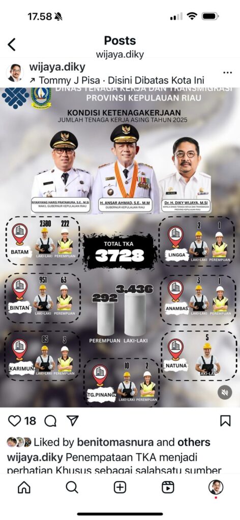 Tapi terlepas dari masalah TKA dan juga tentang K3, ada anomali di Kepri soal ketenaga kerjaan. Banykanya investasi di Kepri terutama Batam, tapi faktanya, di Kepri tingkat pengangguran terbuka nomor dua setelah Papua. Ini mengapa bisa terjadi?