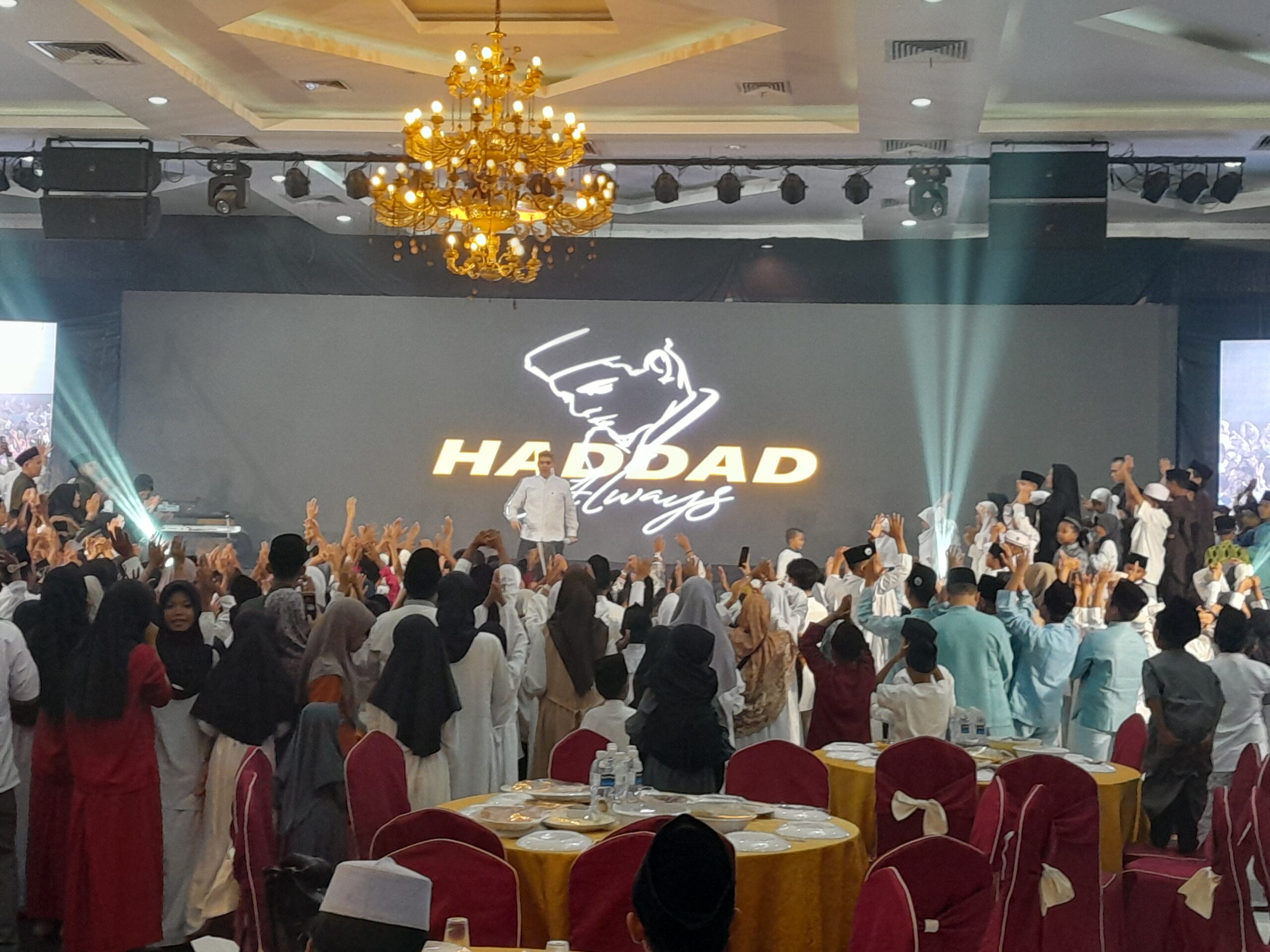 Acara yang konsisten digelar setiap tahun itu juga dimeriahkan oleh Haddad Alwi, penyanyi religi. Para anak yatim juga bisa berinteraksi dengan pria yang khas memakai sarung di setiap penampilannya itu.