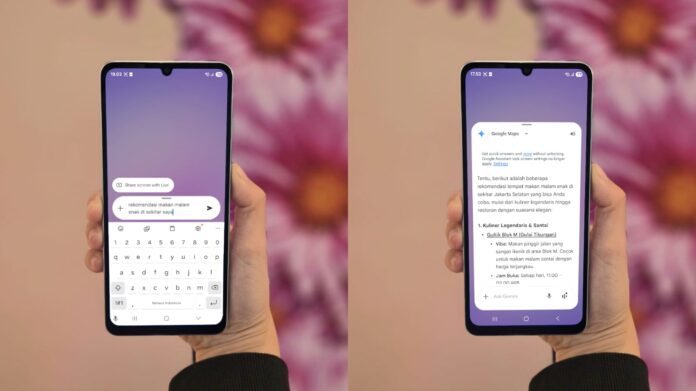 Di Galaxy A07 5G, cukup tekan dan tahan side/power button untuk mengakses Gemini AI. Pengguna bisa langsung memperoleh bantuan instan, mulai dari merangkum informasi, mencari ide konten, hingga membantu menyusun pesan atau merencanakan aktivitas harian.