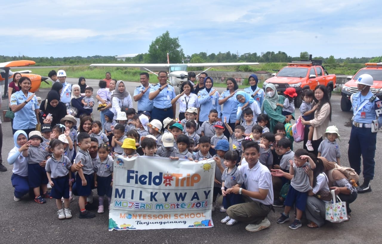 Pinang, Posmetrobatam.co: Taman Kanak Kanak (TK) Milkyway Modern Montessori kunjungan edukasi ke Baseops Lanud Raja Haji Fisabilillah (Lanud RHF) kota Tanjungpinang, Provinsi Kepulauan Riau, Rabu (12/11). Hal ini dalam rangka menumbuhkan minat dan wawasan anak-anak terhadap dunia kedirgantaraan sejak usia dini.