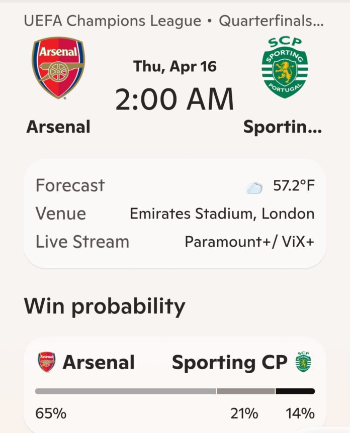 Dengan keunggulan tipis, Arsenal tetap diunggulkan untuk melaju ke semifinal. Namun Sporting CP akan tampil habis-habisan demi mencetak sejarah baru di Liga Champions. Laga ini berpotensi menghadirkan drama besar dengan atmosfer khas malam Eropa di London.**
