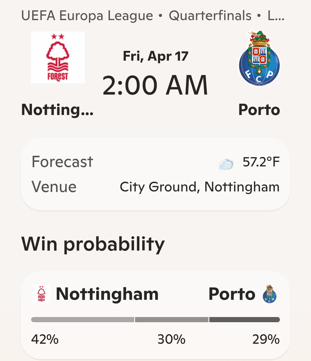 Pelatih Nuno Espírito Santo berharap dukungan penuh publik City Ground bisa menjadi dorongan tambahan bagi Forest. Sementara itu, Porto yang diasuh Sérgio Conceição akan mengandalkan pengalaman panjang mereka di kompetisi Eropa untuk mencuri kemenangan tandang.