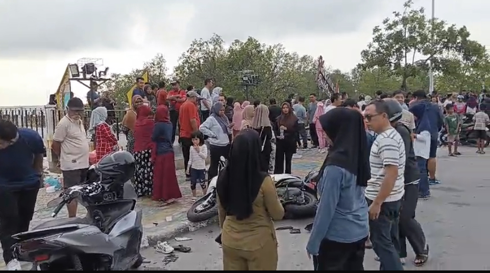 Posmetrobatam.co: Sebuah Mobil Toyota Avanza dengan nomor polisi BP 1422 YK melaju kencang dari arah Hotel 21 menuju Tugu MTQ, mobil tak terkendali, dengan cepat tiba-tiba mobil mengarah ke kiri dan menghantam motor yang sedang parkir serta warga yang sedang berolahraga di lokasi Tugu MTQ, Coastal Area Kabupaten Karimun, Kepri, Minggu (19/4/2026) sekitar pukul 06.00 WIB pagi.