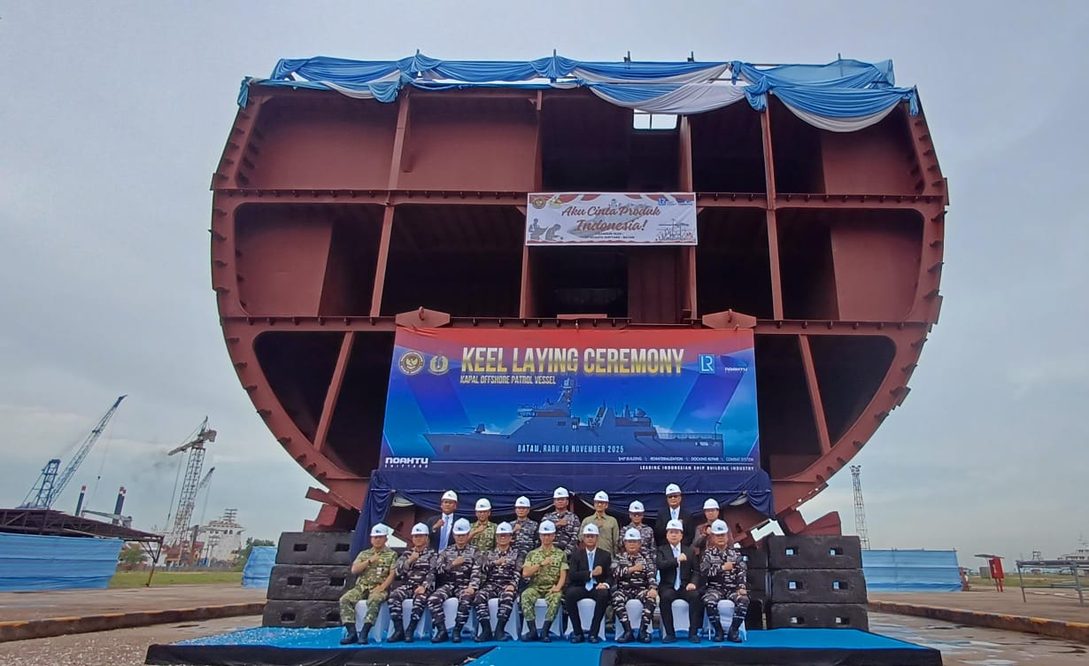 Batam, Posmetrobatam.co: PT Noahtu Shipyard bekerja sama dengan Kementerian Pertahanan Republik Indonesia menggelar Keel Laying Ceremony atau peletakan lunas pembangunan satu unit Kapal Offshore Patrol Vessel (OPV) H7117, Rabu (19/11).