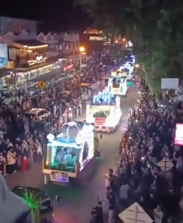 Peserta pawai takbir berjumlah 77 kendaraan dengan rincian mobil hias 37 unit, mobil pendukung 40 unit.