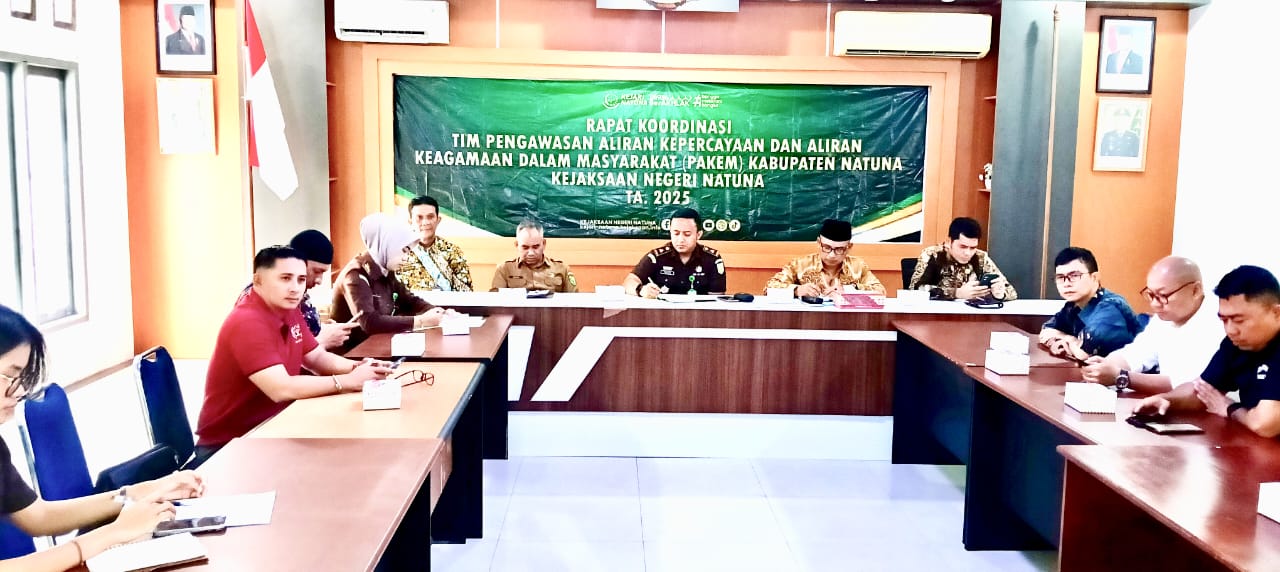 Natuna, Posmetrobatam.co: Kejaksaan Negeri (Kejari) Natuna menggelar Rapat Koordinasi (Rakor) Pengawasan Aliran Kepercayaan dan Aliran Keagamaan Masyarakat (PAKEM) ke-2 tahun 2025, Kamis (21/8) pagi.