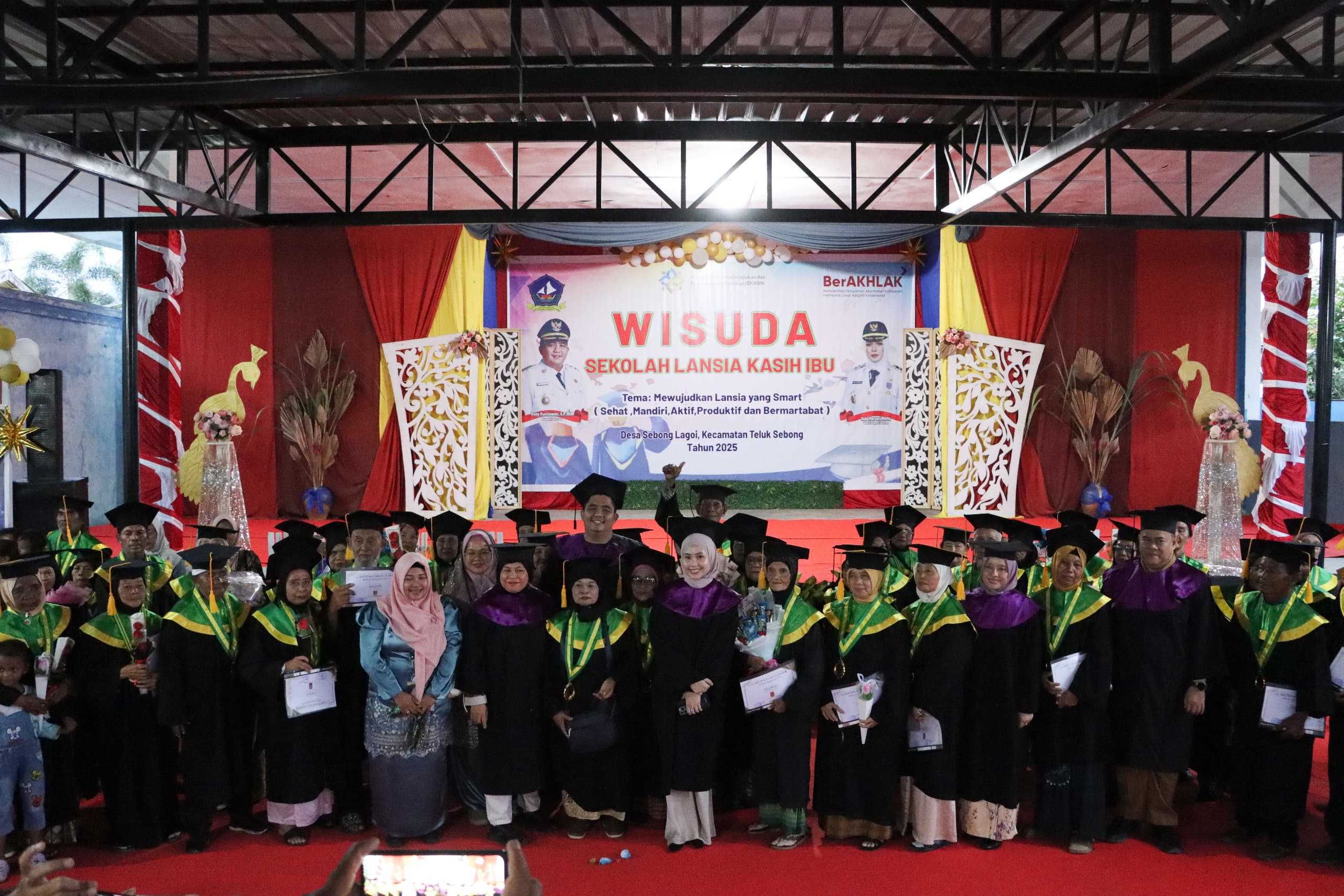 Bintan, Posmetrobatam.co: Sebanyak 60 orang lansia diwisuda Bupati Bintan Roby Kurniawan bersama Ketua TP PKK Bintan sekaligus Ketua LKKKS Bintan Hafizha Rahmadhani. Seluruh lansia ini telah menyelesaikan pendidikan non formal di Sekolah Lansia Kasih Ibu Desa Sebong Lagoi Tahun Pelajaran 2025.