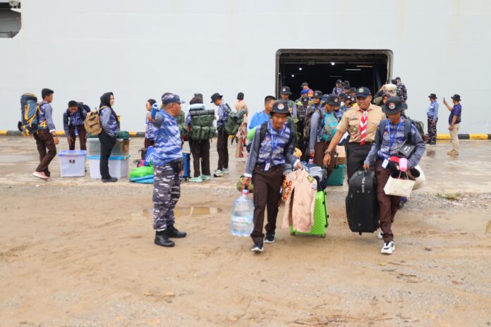 Batam, Posmetrobatam.co: Kodaeral IV Batam menyambut kedatangan Peserta Pembinaan Pembentukan Karakter Maritim (PPKM) Tahun 2025 dengan menggunakan KRI dr. Soeharso-990 di Kota Batam yang bersandar di Dermaga Bintang 99, Batu Ampar. Sabtu (22/11/25).