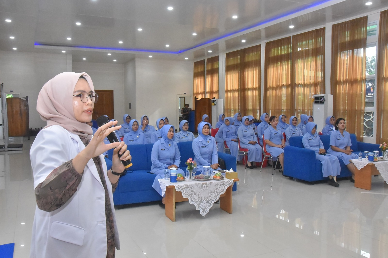Kegiatan tersebut menghadirkan narasumber dr. Ririn Octarina yang menyampaikan materi tentang pentingnya menjaga kesehatan melalui pola hidup sehat, mulai dari menjaga pola makan seimbang, berolahraga teratur, istirahat yang cukup, hingga mengelola stres dalam kehidupan sehari-hari.