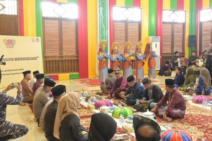 Pinang, Posmetrobatam.co: Komandan Lanud Raja Haji Fisabilillah (RHF) Kolonel Pnb Rony Widodo, S.T., M.M., M.Han., menghadiri Pembukaan Makyong Warisan Dunia yang diawali tradisi makan berhidang khas budaya Melayu. Acara berlangsung di Gedung Lembaga Adat Melayu (LAM) Provinsi Kepri, Kawasan Gurindam 12, Tanjungpinang, Senin (22/9).