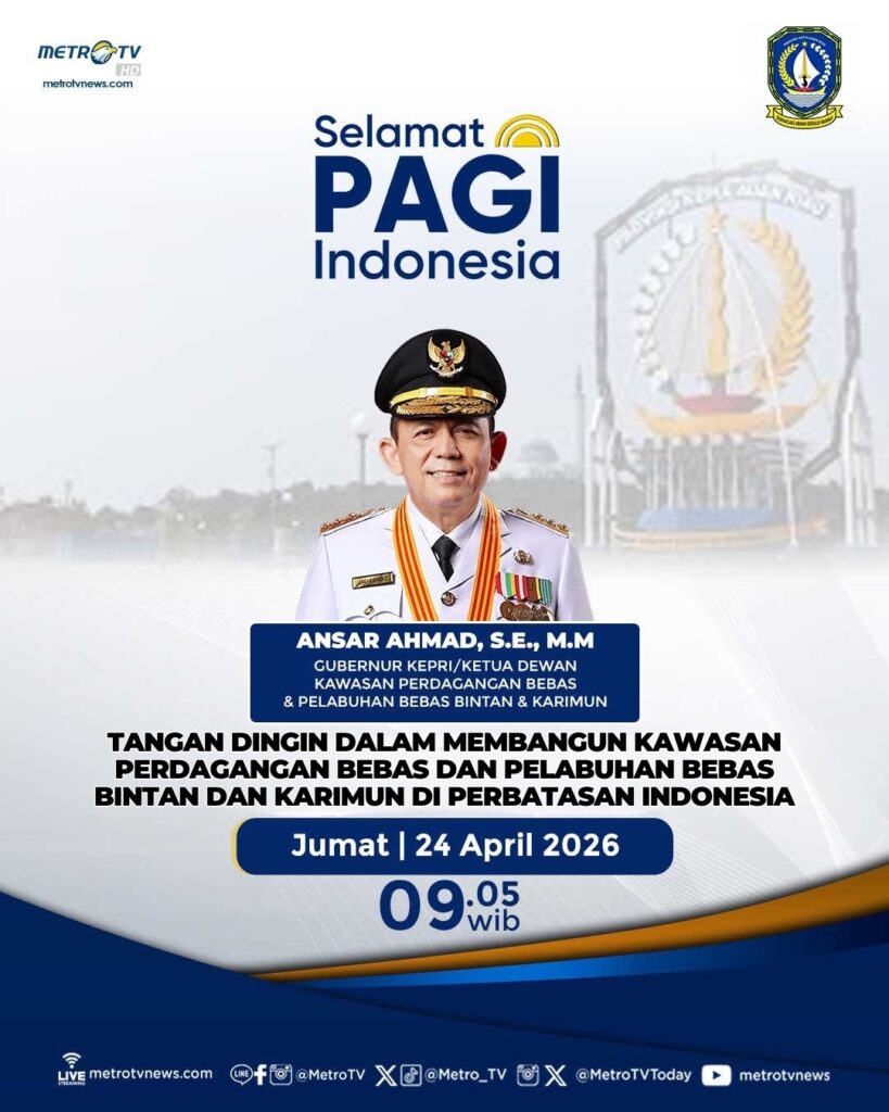 Sebelum menterima award, Gubernur Ansar juga di jadwalnya tampil di MetroTV pada pagi harinya dalam program Selamat Pagi Indonesia, ditayangkan jam 09.00 WIB. Adapun tema dialog ini adalah ‘Tangan Dingin Dalam Membangun Kawsan Perdagangan Bebas dan Pelabuhan Bebas Bintan dan Karimun di Perbatasan Indonesia.(***/pemprovkepri)