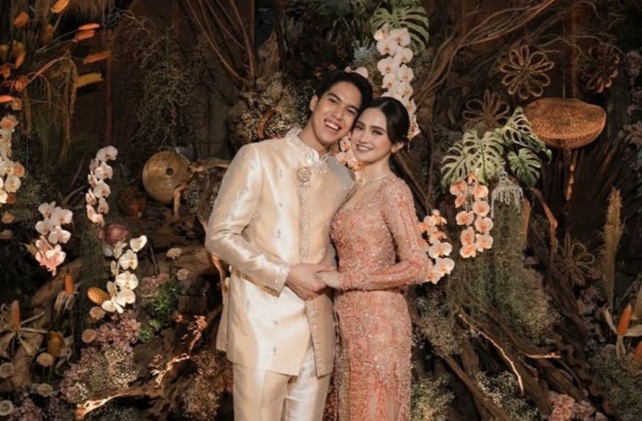 Sementara itu, sang istri Syifa Hadju tampil memukau dalam kebaya klasik panjang berwarna putih, dihiasi detail halus yang mempertegas kesan elegan dan bersahaja. Riasan paes serta sanggul tradisional semakin menguatkan nuansa adat yang diusung.