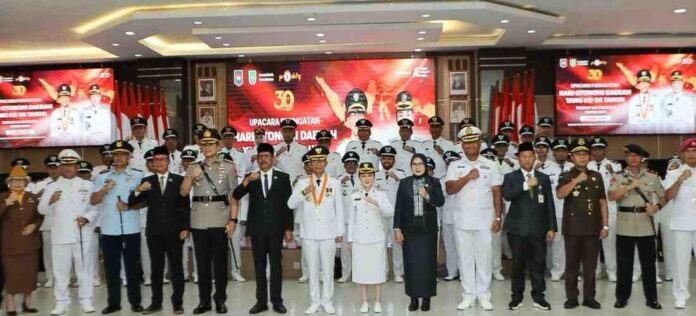 Batam, Posmetrobatam.co: Ketua DPRD Kota Batam, H. Muhammad Kamaluddin, dan Wakil Ketua I DPRD Kota Batam H. Aweng Kurniawan, menghadiri undangan Wali Kota Batam pada Upacara Peringatan Hari Otonomi Daerah ke-XXX Tingkat Kota Batam Tahun 2026 yang digelar pada Senin (27/4/2026) pagi.