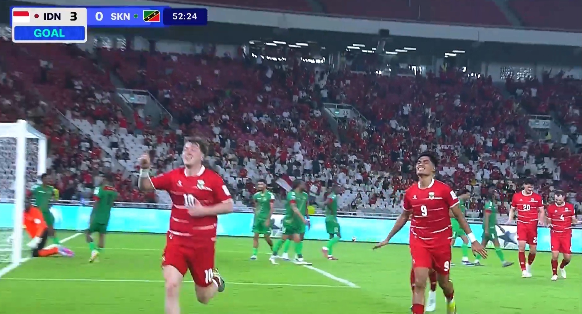 Saat mengalahkan Saint Kitts dan Nevis 4-0, Indonesia tampil disiplin dalam menjaga jarak antar lini. Build-up dimulai dari bawah dengan distribusi bola rapi sebelum masuk ke sepertiga akhir pertahanan lawan.