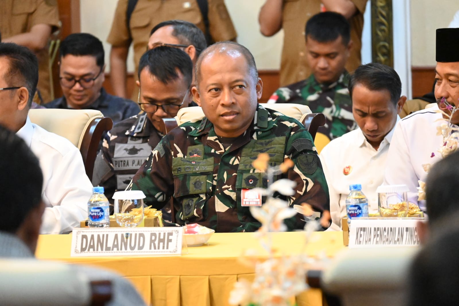 Dalam sambutannya, Wakil Gubernur Kepri Nyanyang Haris Pratamura, S.E., M.Si., memaparkan kondisi geografis dan potensi strategis Provinsi Kepulauan Riau, baik di bidang investasi, kelautan, perikanan, maupun pariwisata. Beliau juga menekankan pentingnya dukungan pemerintah pusat dalam menyelesaikan berbagai kendala pembangunan PLBN Serasan, Kabupaten Natuna, sebagai salah satu pintu perbatasan negara.