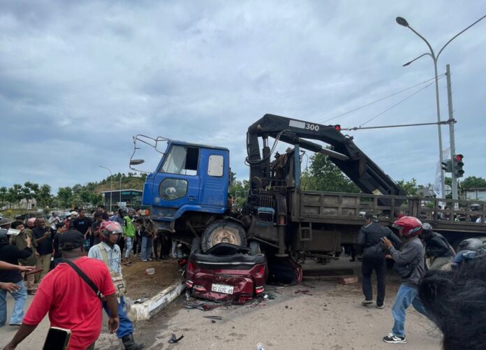 Lagi, Lori Crane Blong Makan Korban Lindas Mobil dan Motor di Simpang Tiga Tiban